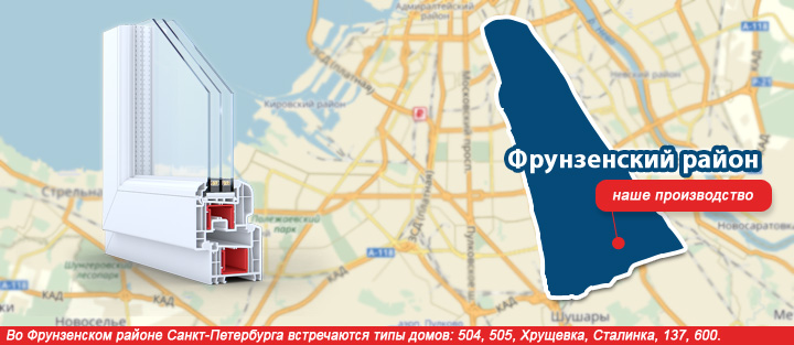 Фрунзенский район был образован в первой половине XX века и располагается в южной части Санкт-Петербурга. На территории района проживает 406 тыс. человек, для которых доступны многочисленные культурные учреждения, места проведения досуга, магазины, жилые комплексы. Активная застройка продолжается по настоящее время, в связи с чем, вопрос установки пластиковых окон для жителей района становится особенно актуальным.