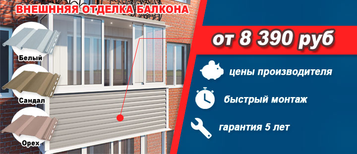 Для улучшения комфортабельности балконов осуществляются наружные работы по утеплению конструкции. Внешняя отделка балкона является важным процессом в обеспечении защиты от холода. При производстве внешней обшивки для лоджии используются фасадные панели ПВХ или сайдинг, главными отличиями между ними выступает цена и внешний вид материалов.
