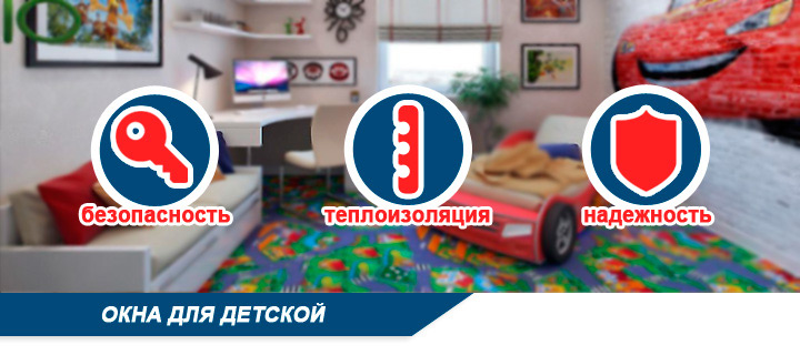 Обустраивая детскую комнату для своего ребенка, родители обращают внимание не только на эстетичный вид помещения, но и на обеспечение повышенной безопасности. Пластиковые окна для детской подразумевают установку специальных замков, не допускающих открывание створки без специального ключа. Родители могут быть уверены, что оконная ручка с замком не позволит ребенку любого возраста самостоятельно открыть створки конструкции. В детскую комнату также рекомендуется устанавливать окна с многокамерным стеклопакетом для сохранения в помещении комфортной температуры круглый год. Надежная защита от неблагоприятных погодных условий заботиться о здоровье детей и создает подходящие условия для всестороннего развития малышей: игр, обучения, спокойного сна.